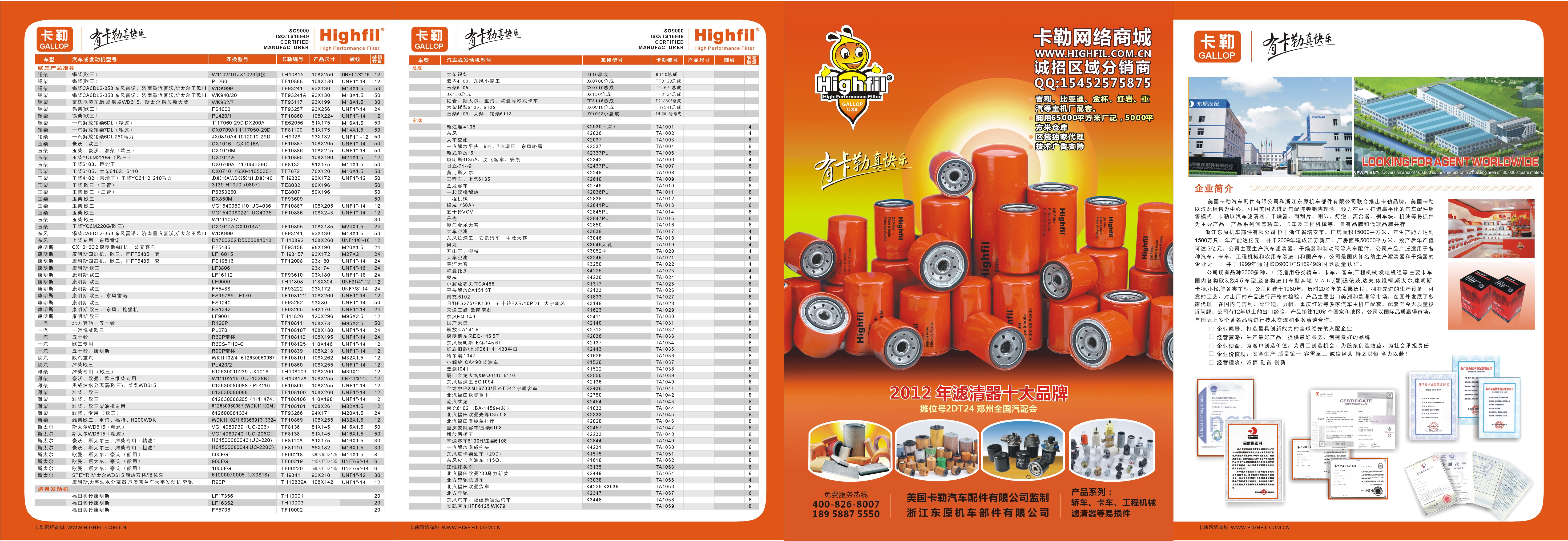 東原濾清器轎車目錄
